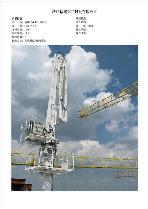 歸屬行業(yè):信瑞重HG24A-3R電梯井內爬混凝土布料機