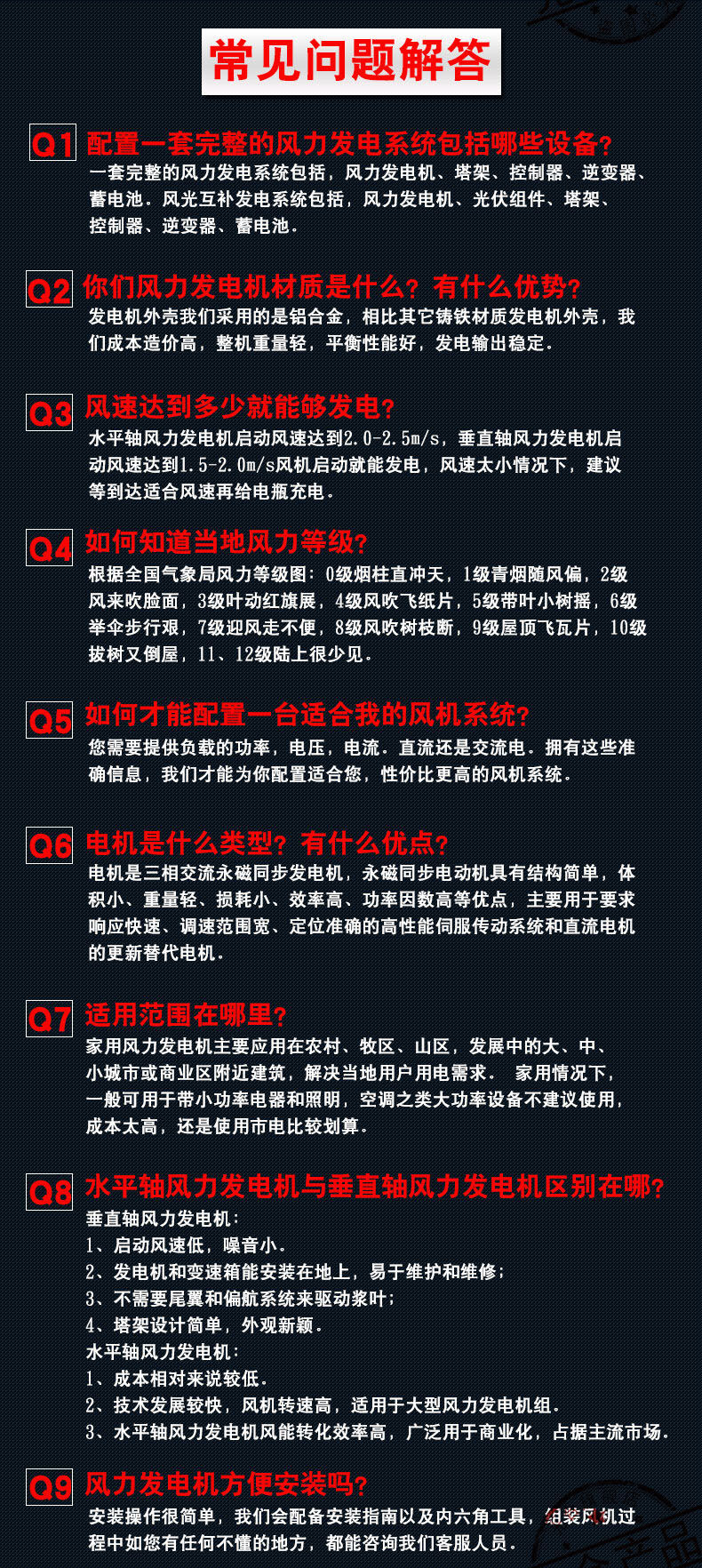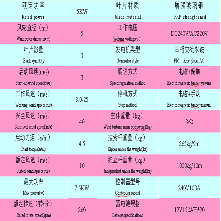 注意:以上寶貝報價為風力發(fā)電機主體的價格(含:5KW發(fā)電機、回轉體、尾舵、風輪、風葉等組件),如需逆變器、蓄電池、控制器、太陽能板或塔架,請咨詢客服。