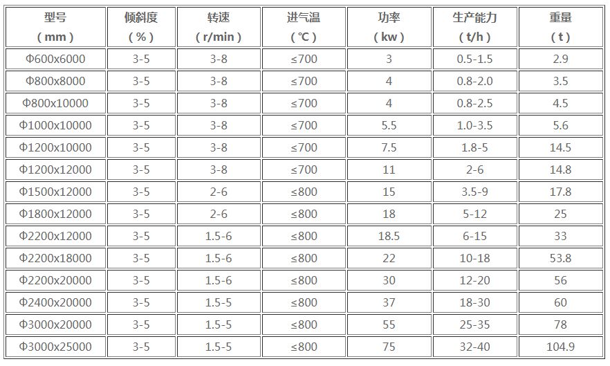 烘干機主要技術(shù)參數(shù)