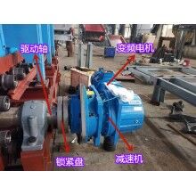 2)該裝置為直交軸支點浮動式,主軸套裝在行星直交減速器的空心輸出軸內(nèi),通過鎖緊盤將兩者聯(lián)結(jié)起來,其特點是懸掛式,重量輕,速比大,拆裝及維修方便。