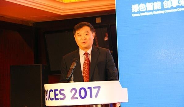中國工程機械工業(yè)協(xié)會常務(wù)副會長兼秘書長蘇子孟做BICES 2017展會倒計時100天主題發(fā)言。
